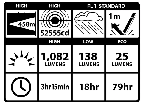 You might start to think how that could be a problem. So for a flashlight with the above rated FL1 specs, it could have 1082 lumens at 30 seconds and drop to 250 lumens at the 60 second mark. And then stay at 250 until it dies at the 3hr15min mark. That would be in agreement with the spec but as a user, you probably paid for it thinking you would get almost 1000 lumens for 3 hours whereas the reality could be so far away from that.