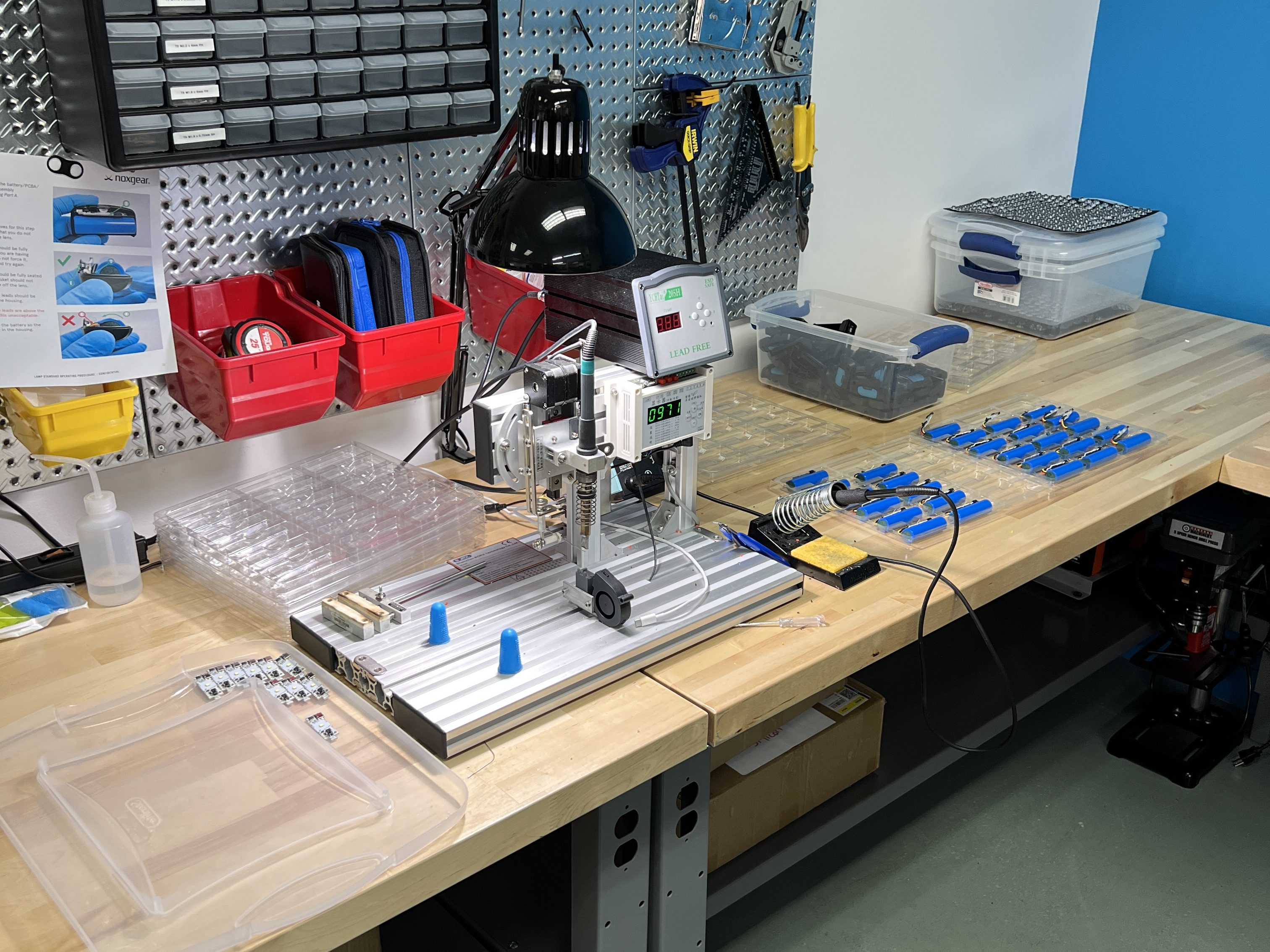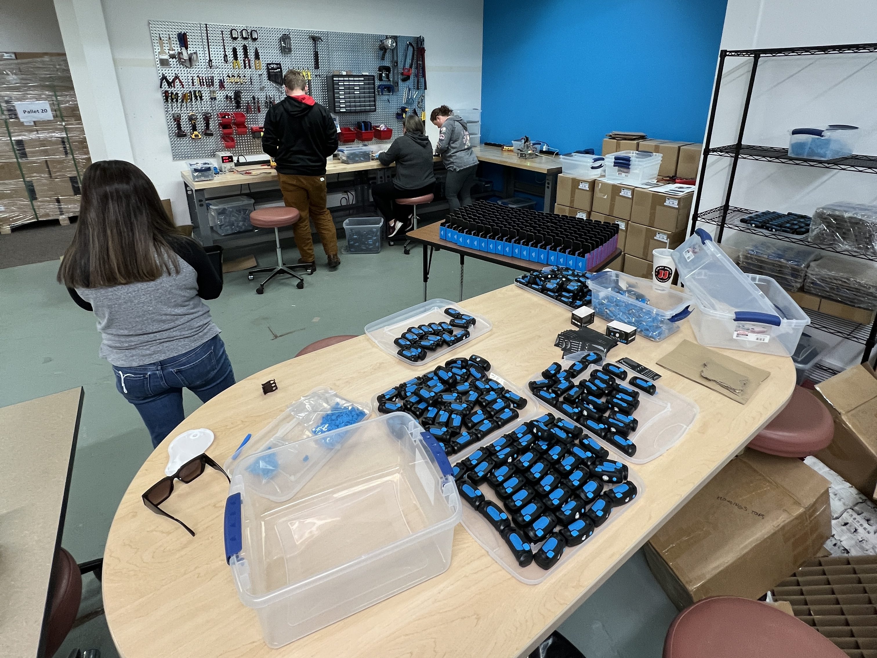 The assembly process had quiet a few steps so we set up an assembly line at the office. We asked everyone to help and in true startup fashion, were able to pull everyone together and crank out almost 500 lamps per day.