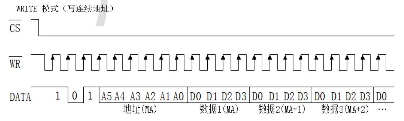 Looking at the CS line, I could tell that there were 16 packets of data, each packet 17 bits long. That made sense when looking at the datasheet since the first 3 bits were for the packet type, next 6 were for the memory address and the last 8 were two 4 bit numbers for to write to that address bit. These numbers would be the actual data that correspond to the digits being displayed.