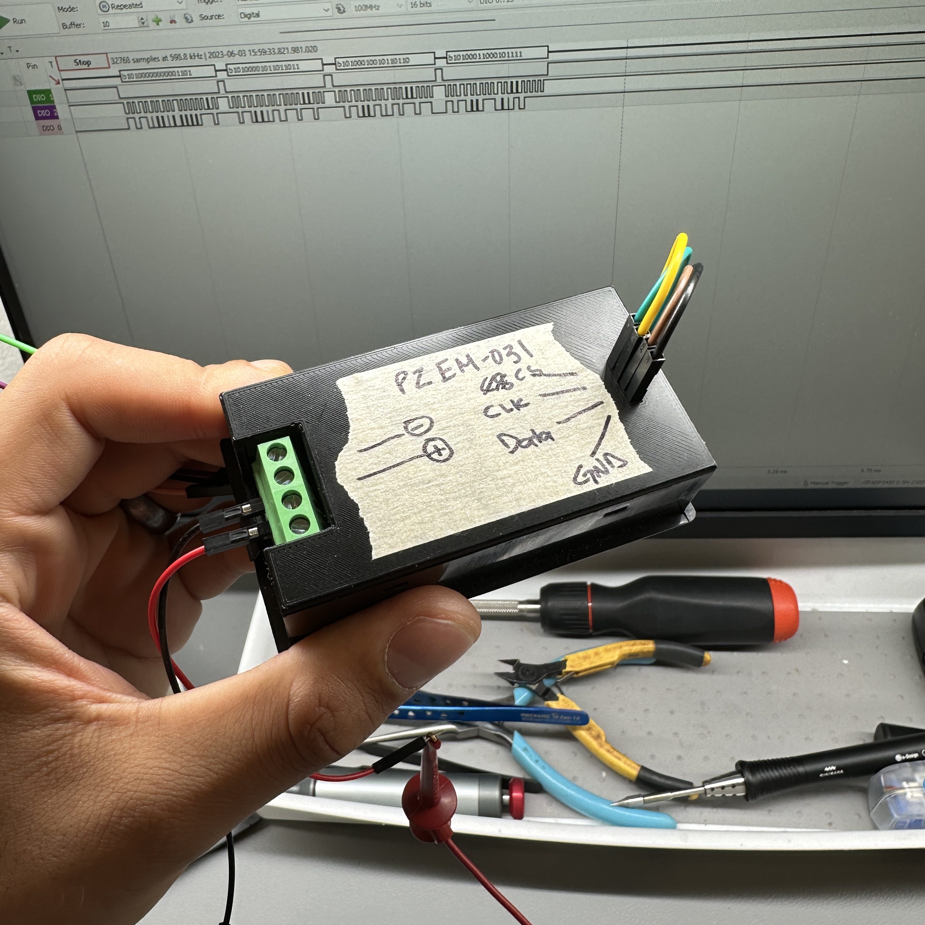 Hence, I switched over to bit banging the data using hardware interrupts. After some trial and error, I was able to read in all 17 bits of data reliably.